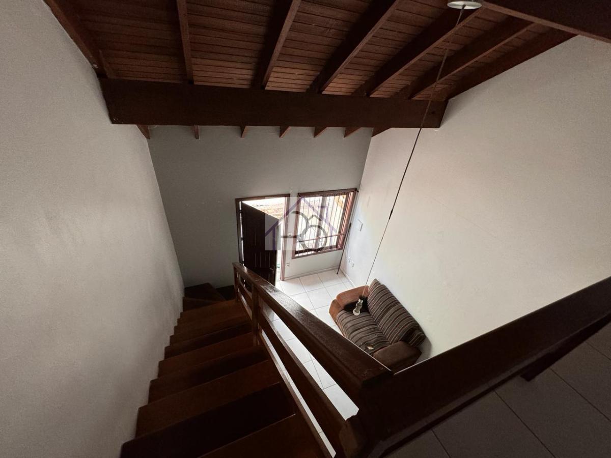 Composto com dormitório na parte superior, sala e cozinha conjugados, banheiro social,